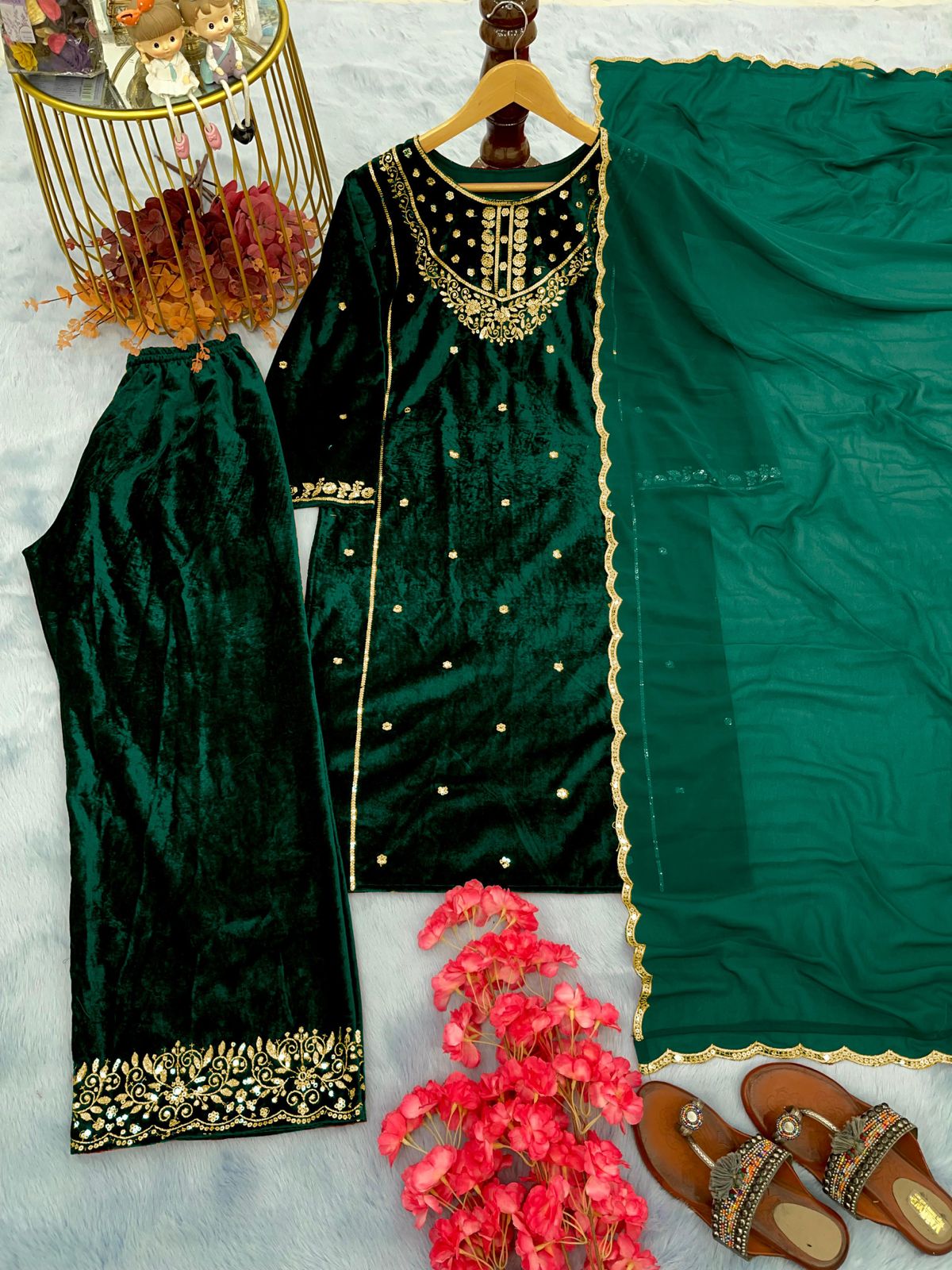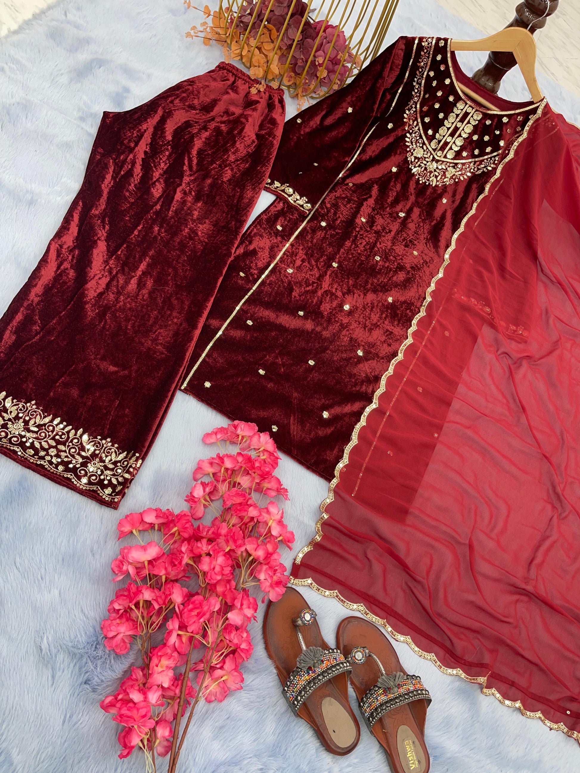 ππ§ββοΈ *Plazzo Fabric *:Heavy Pure Viscose Velvet With Embroidery 5 mm Sequence Work