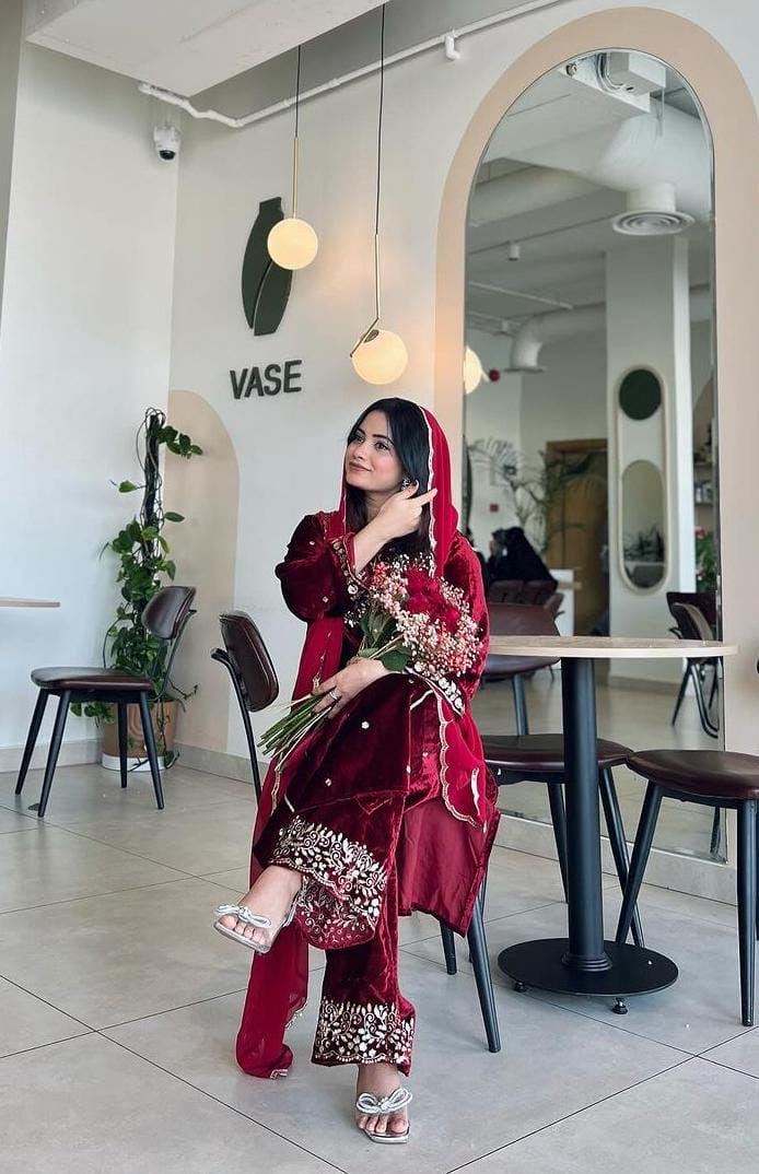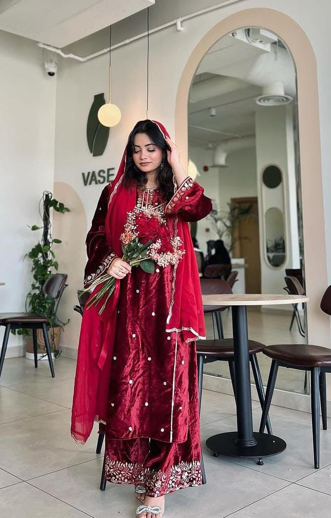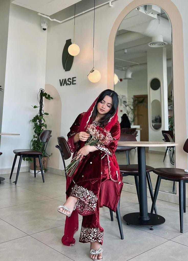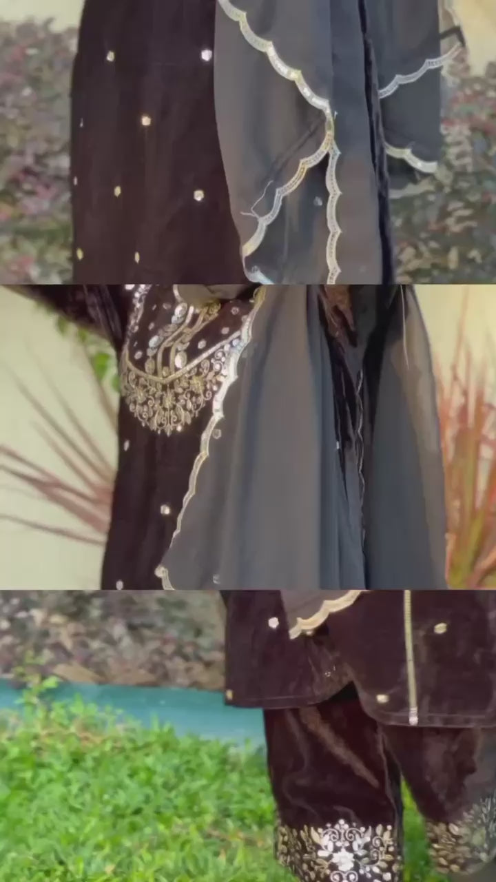 ππ§ββοΈ *Top Fabric*:Heavy Pure Viscose Velvet With Embroidery 5 mm Sequence Work With Fancy Sleeve